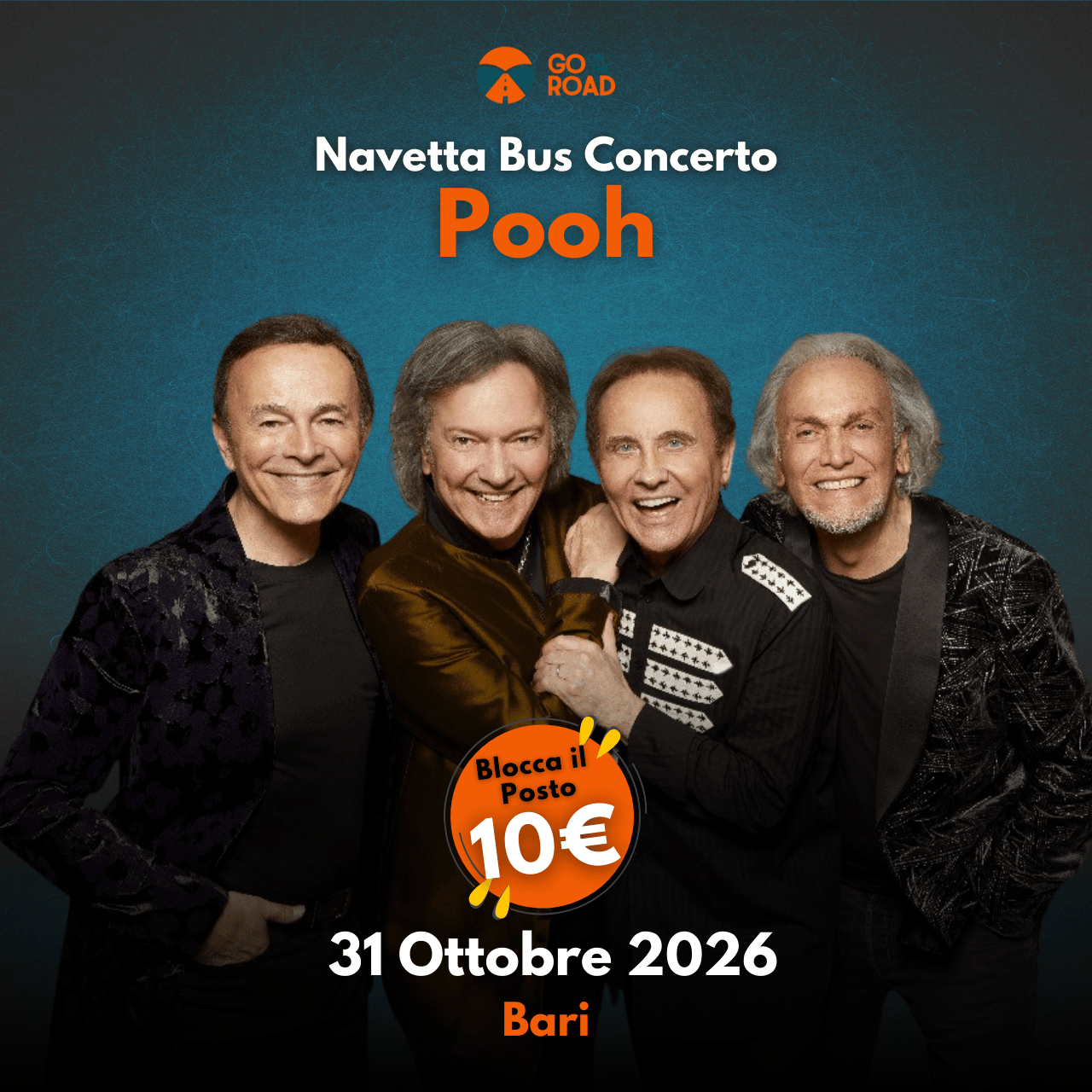 Prenota ora la tua navetta per il concerto dei Pooh a Bari il 31 Ottobre 2026 e vivi un’esperienza musicale indimenticabile! 🎶✨