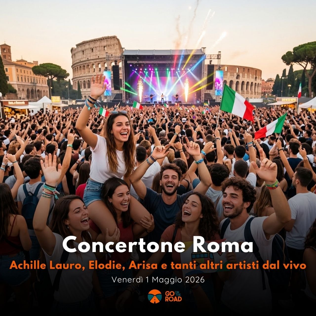Vivi la magia del Concertone del Primo Maggio a Roma senza lo stress del traffico e del parcheggio. Partenza comoda in bus Gran Turismo A/R dall’Abruzzo per goderti la musica dal vivo e l’energia unica della Capitale. Il tuo unico pensiero sarà raggiungere Piazza San Giovanni a Roma, cantare a squarciagola sotto il palco con tantissimi artisti e goderti la musica dal vivo fino all’ultima nota!